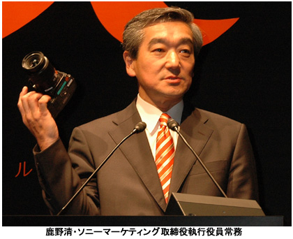 会見の席上「α100」の販売を統括するソニーマーケティングの鹿野清・執行役常務は「HDD-DVDレコーダーに保存し、液晶テレビで見るといったソニーが持つAV機器と連携した新しい楽しみ方を提案すれば勝算はある。また、他社の普及機(入門機)にない高画質機能を前面に出せば、(価格競争に巻き込まれず)違いは十分出せる」と自信を見せた。