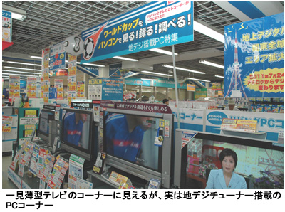 現在、テレビ同様、パソコンにも、2011年にアナログ放送が終了する旨を告知するシールが貼られている。このシールは今年の9月までに順次貼付するというスケジュールになっているが、店頭で見たところ、すでにほとんどの該当機種にシールが貼られているようだった。パソコンに限らず、テレビやDVDレコーダーを選ぶ際は、搭載するチューナーの種類や数を必ず確認しておこう。