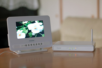 現在風呂場で楽しめるテレビはいくつか発売されているが、今回試したのは無線LANに対応する防水仕様の液晶テレビセット、プリンストンテクノロジーの「PTV-WWTV7」だ。製品構成は、無線チューナーとテレビ本体に分かれている。無線チューナーで受けたテレビ番組や無線チューナーに接続したHDD-DVDレコーダーなどの映像を無線LAN経由でテレビに飛ばして視聴する、という製品だ。