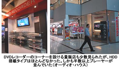 実際、シンガポールの3大量販店といわれる、豪州系の「ハービー・ノーマン」、英国系の「コーツ」、日本系の「ベスト電器」を回ってみても、録画機能付きのHDD搭載型DVDレコーダーを目にすることは、ほとんどなかった。「録画した番組をフレーム単位できっちりと編集して保存しておく、などという文化は世界のどこを探しても、おそらく日本だけ」と、TSPの誰もが口をそろえて語っていた。