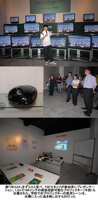 TSPでは、こうした広域の販売エリアをまとめるため「ワールドツアー」を毎年開催、新製品の紹介や販売優秀国の表彰などを行っている。アジア、アフリカ、ロシア、オセアニア、中近東の各地域から有力代理店や現地法人スタッフなどが一堂に会する大イベントだ。おととしは東京、昨年は上海で開き、9回目の今年は「Dreams Come True」と題し、8月25日にシンガポールで開催した。参加者は43カ国から380名。今回の目玉は、なんといっても世界共通ブランドのデジタル液晶テレビ「REGZA」。「世界全体で情報格差がなくなっていくなか、同一ブランドで展開していく戦略」のひとつだ。