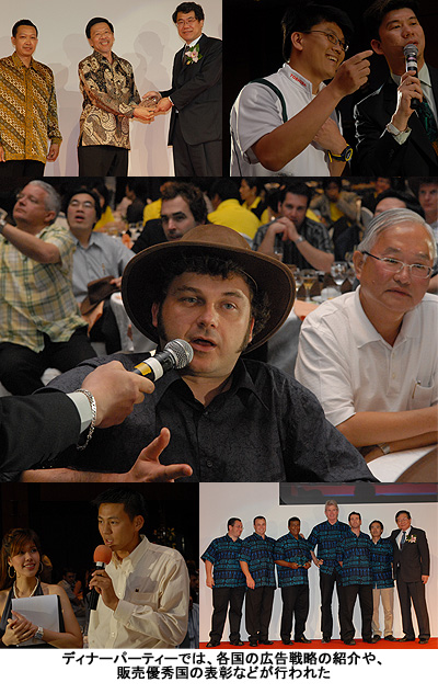 最後にショッピングセンターも併設するシンガポール国際会議場「サンテック・シティ・コンベンションセンター」で、「ワールドツアー」参加者のためのディナーパーティが開催された。ここでは各国の広告戦略や製品ジャンルごとの販売優秀国の表彰も行われた。