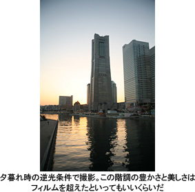 それだけではない。35mmフルサイズの撮像素子は1画素当たりの受光面積も大きくなるため、ダイナミックレンジの広い、より階調豊かな表現が可能になる。一般に、デジカメで撮った画像は、シャドー部の表現力はフィルムに匹敵するが、ハイライト部は簡単に白飛びしやすい、といわれる。フィルムほどラチチュード(明暗差の許容量)が広くないのである。撮像素子のサイズが大きくなってダイナミックレンジが広がると、白飛びや黒つぶれ、偽色など、デジタル特有の現象も軽減されるのである。そのためか、「EOS 5D」の画質は評価が高く、もはや銀塩フィルムの表現力を超えている、とさえいわれている。