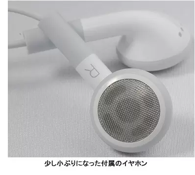 前述したようにイヤホンも新しくなった。やや小ぶりなタイプが付属するが、このイヤホンは私の耳には合わなかった。どうも左右で耳の穴の大きさが違うようで、左のイヤホンだけが耳から外れてぽろぽろ落ちる。耳にしっかりフィットせず、音もかなり不安定になるため、付属イヤホンの評価は行わないことにした。旧版のイヤホンなら問題ないのだが、これは完全に個人差の問題だ。