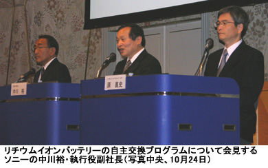こうした経緯から、ソニーは9月にバッテリーの全供給先に対して自主交換プログラムを実施すると発表した。これを受けて東芝、富士通がバッテリーの自主交換プログラム実施を表明。10月には日立製作所、シャープ、米ゲートウェイもプログラムの開始を発表した。そして、10月下旬、ソニーは会見を開き、ようやくバッテリー不具合の原因について詳細に説明、自主交換プログラムの全容を明らかにした。