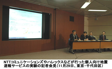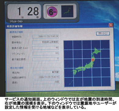 今後のサービス普及のポイントは、06年度を目標に気象庁が予定している個人向けの「緊急地震速報」の提供だ。個人向けサービスを視野に実験を行うNTTコムなどをはじめ、現在法人向けサービスを行っている企業でも個人が利用するようになれば普及が進むと見ている。新たに参入する企業も増えそうだ。