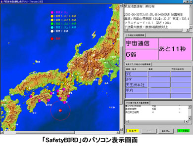 電波を使ったサービスも登場している。宇宙通信では通信衛星を利用して地震速報を専用受信機に一斉配信する企業向けのサービス「SafetyBIRD」を開始した。