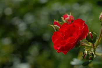 花の撮影に戻ると、風で揺れている花を追いかけてピントを調節していると、まったく間に合わないのでやめたほうがいい。ピントをマニュアルモードにして、ある1点に固定しておき、花がピントが合う範囲に入ったときにシャッターを押すようにする。また微妙なピント合わせに関しては、ピントリングを動かすのではなく、カメラごと、つまりカメラを持った自分が微妙に前後に動いて調節するといい。このように屋外で花の写真を撮るのは意外に難しく、いい写真を撮りたいなら沢山シャッターを切って数をかせぐ必要がある。フィルムがいらないデジカメはその点気楽だから、できるだけ沢山撮ってみて「作品」をモノにして欲しい。