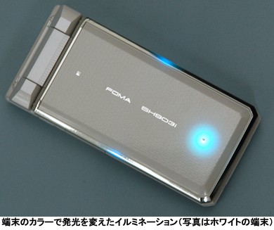 最も力を入れたのが「デザインとしてイルミネーションをどう使っていくか」(同)。今までシャープの端末は、あまり光を使わないため、シンプルな印象があった。そこで、「SH903i」では、あえて光を使ったイルミネーションにチャレンジした。