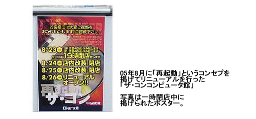 2005年9月のマルチメディアAKIBA開店直後、電気街にある複数の店舗を取材してまわった。マニアや特定ユーザーをターゲットとした店舗では、「ヨドバシカメラ開店の影響は案外少ない。当店はヨドバシカメラとは競合する店舗ではないし、むしろ、秋葉原への集客が増えたことで、来店者数ではプラス」という声が多かった。しかし、ザ・コンピュータ館のリニューアルコンセプトは、「デジタルライフ・スタイル提案と、初心者にも優しいPC総合専門店」。マルチメディアAKIBAと重なる顧客層を想定したリニューアルであり、周囲の店舗からは、「ヨドバシのオープンの影響を最も受けているのが、ザ・コンピュータ館では」という声もあがっていた。