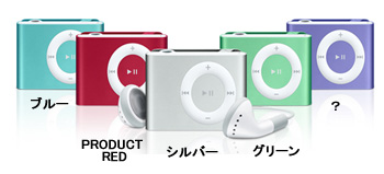 ちなみに、「iPod Shuffle」と「iPod nano」は5色のカラーバリエーション。ところが、名前がわからない色がある。アップルストアでは、classicについては、シルバー、ブラックの表記があり、shuffleとnanoについては「PRODUCT RED」の表記がある。類推して、シルバーとブラックは分かるが、残る「青っぽい色」「緑っぽい色」の名前が見当たらないのだ。これについてアップルジャパンのスタッフに確認したところ、彼らは「ブルー」「グリーン」と呼んでいるという(そのまんまかい)。やっと名前が判明したこの2色だが、そういえば「紫っぽい色」の名前について聞くのを忘れていた。これは依然として謎のままだ。いずれにせよ、前モデルの派手な色に比べると、ずっと落ち着いた淡い色になった。