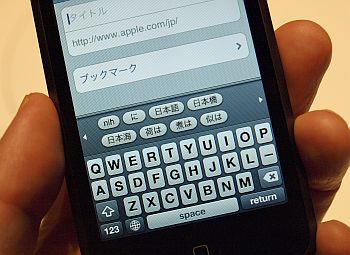 ところで、「iPod touch」には、「iPhone」と同じ指先でタップして文字を入力するソフトウエアキーボードが搭載されているのだが、これが日本語に正式対応している。入力はローマ字入力で、漢字仮名まじりの予測変換が機能する。携帯電話の文字変換に近い感じ、と思ってもらえればいいだろう。おかげで、Safariブラウザでのグーグル検索や、iTunes Wi-Fi Music Storeでの楽曲検索などが、日本語でできる。