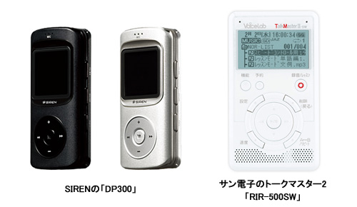 一方、ラジオ番組の中でも語学講座向けに工夫された携帯オーディオが、サン電子のトークマスター2「RIR-500SW」。こちらは同社が「ラジオMP3レコーダー」と分類しているもので、FM・AMチューナーを搭載する製品。予約録音は最大20件まで可能で、月・日・曜日を設定して行える。内蔵メモリの容量は128MBだが、SDカードも使えるので、外部メモリに番組を保存することも可能。語学に便利なリピート機能や再生スピードのコントロール機能も備える。