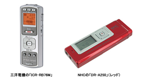 社会人なら、会議のやり取りなどが録音できるICレコーダータイプが一石二鳥で使いやすいかもしれない。三洋電機の「ICR-RB76M」は、FM・AMチューナーを搭載し、MP3形式でラジオの予約録音ができるICレコーダー。毎日・毎週・1回の3パターンから選択して、最大5件までの予約が可能。内蔵メモリの容量は256MB。同モデルの後継機でメモリ容量が1GBに増えた「ICR-RB78M」も10月下旬に登場する予定だ。