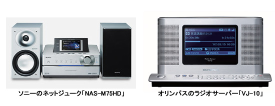 自宅でFM・AMラジオを録音するのに手軽なオーディオ機器がコンポ。ソニーのネットジューク「NAS-M75HD」は容量80GBのHDD内蔵型コンポで、本体にどんどんラジオ番組を溜められる。保存した番組はPCと接続せずに直接同社の携帯オーディオ「ウォークマン」に転送したり、USBケーブルで接続した携帯電話に転送したりできる。ラジオ番組は最大10件の予約録音ができ、通常の録音のほか、番組内の音楽部分とトーク部分を自動で分類して録音する機能も備える。
