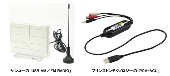 プリンストンテクノロジーのUSBオーディオキャプチャーユニット「PCA-ACU」も、PCにラジオ番組を予約録音できる。PCとつないで付属のオーディオ変換ソフト「Pod Sound Ripper」をインストールし、FM・AMチューナー搭載のオーディオ機器と接続すればセットアップは完了。予約録音機能は、録音時間をタイマーで設定する「クイック録音」と、日時と録音開始・終了時間を設定する「スケジュール録音」の2つを備える。対応ファイルはMP3、WAV(PCM)で、録音後は携帯オーディオに番組を転送して楽しめる。