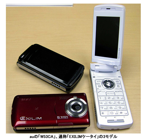 KDDI、515万画素カメラと手ブレ補正モード搭載の「EXILIMケータイ W53CA」