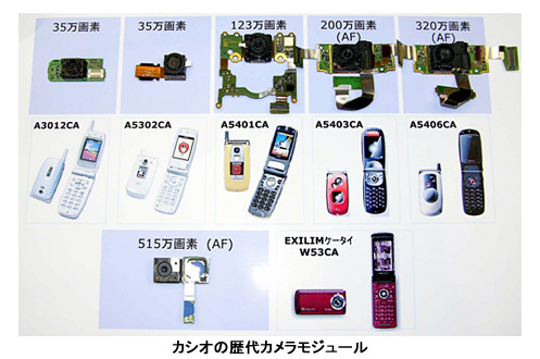 カシオがこれまで手がけた歴代機種の内部資料写真を見ると、カメラの画素数が高まると、それに比例してカメラモジュールも大きくなる様子がわかる。そのなかで、「EXILIMケータイ」のカメラ部品は劇的なコンパクト化に成功している。そこで使われた技術がどんなものだったかは、企業秘密として明かしてくれなかったが、「『EXILIMケータイ』の企画・開発期間は1年ほどだが、この小ささはこれまで数年間にわたって開発してきたからこそ実現できた。他社にはなかなか真似できない」と本間氏は自信を語った。