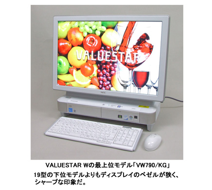 今回使用したのはNECの一体型水冷PC「VALUESTAR W」シリーズで、22型ワイドディスプレイを備え、次世代光ディスクのBDとHD DVDにいずれも対応する最上位モデル「VW790/KG」。CPUを冷却水で冷やすのはもちろん、HDDを水冷ジャケットで包み、冷却しながらHDDの駆動音も低減させる世界初のシステムを搭載する。そのため従来の水冷PCよりも一層静かになった。ファンの回転数が最大の時で30dB程度だった駆動音を25dBまで抑えている。CPUに負荷がかかる作業やHDDのディスクアクセスが続いても実に静かだ。