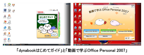 また、初心者向けの解説ソフトも充実している。PCの基本的な操作をわかりやすく解説した「dynabookはじめてガイド」や、ワードやエクセルの使い方を学べる「動画で学ぶOffice Personal 2007」といったソフトを標準で搭載。国内最大級の電子書籍の蔵書をもつサイト「eBookJapan」で作品を閲覧できるソフトも付属する。