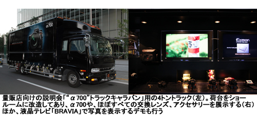 さらに、α700とBRAVIAを搭載した大型トラックで全国の量販店を回る説明会「“α700”トラックキャラバン」も実施。カメラとテレビを連動する良さを量販店の店員に理解してもらうことで、その良さを薦めてもらい、ユーザーのすそ野を広げていく狙いだ。