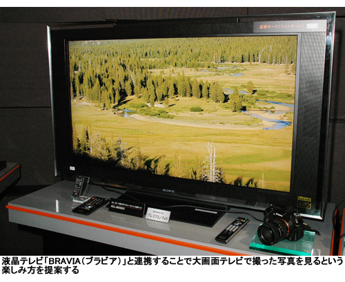 「α700」は「HDMI端子」を搭載するため、ケーブル1本で簡単に高画質な写真を大型テレビに表示することができる。一方、最新のBRVIAにはα700の写真を最適な画質モードで表示する機能を搭載した。