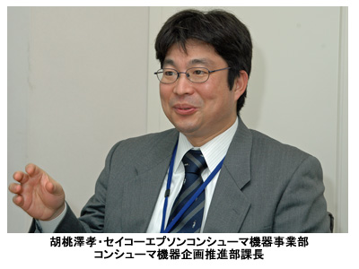 「エプソンは、以前から写真写りの向上に力を入れて開発を進めています。05年に発表した画像処理技術『オートフォトファイン!EX』では、デジタルカメラよりも先に顔認識技術を導入するなど、人物撮影に対しての画像処理技術には自信があります(胡桃澤氏)」