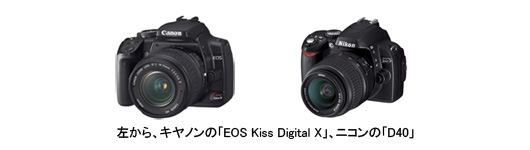 次にデジタル一眼レフカメラ。レンズキットやカラーバリエーションを合算して集計すると、キヤノンの06年9月発売の「EOS Kiss Digital X」がシェア29.3%でダントツ。そのほかキヤノンからは07年8月末発売の「EOS 40D」が5位に、その前機種「EOS 30D」が10位に入った。一方ニコンからは、2-4位までに「D80」「D40」「D40x」の3機種がわずかな差で並んだ。初級から中級者まで幅広い層をカバーする総合力が、07年のメーカー別シェア1位につながったといえそうだ。