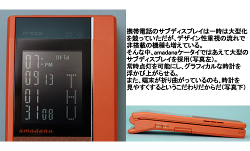 ただ、デザイン、機能ともに優れた端末だけに、「海外のお客さまに『705i』シリーズを見せると、『amadanaケータイ』は必ず気に入っていただける」(同)というから、欧米やアジアなどの世界市場でどんな反応があるか見てみたい気がする。