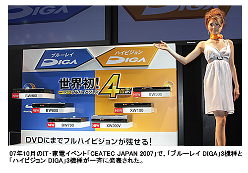 BDレコーダーが「08年には4割」と予測する同社だが、一方で従来のDVDのみの記録に対応したレコーダー「ハイビジョンDIGA」3機種もBDレコーダーと同時に発売。さらに08年2月中にDVDレコーダーの新製品を追加発売する予定で、BD以上にDVDレコーダーに力を入れているようにも見える。