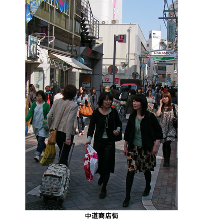 北口正面の便利なサンロード商店街もいいけれど、こじゃれたお店が立ち並ぶ、駅の西側の中道商店街が最近のお気に入り。さっそく道行く人の足音を収録した。収録位置は、地面から高さ50cm程度。普段歩く時はあまり気付かなかったが、録音してみると意外に多いのがベビーカー。カラカラと軽い車輪音がそれだ。休日は若いママ・パパが子ども連れでやってくる通りだということがわかった。