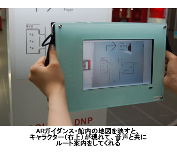 館内でのガイダンス受信は、「AR(Auqmented Reality=拡張現実)ガイダンス」「音声ガイダンス」「ガイダンスなし」から選ぶことができる。「ARガイダンス」は、A4サイズほどのディスプレイにカメラが付属した端末。館内の地図を撮影すると、画面の映像に3Dのキャラクターが合成され、音声を伴ったルート案内をしてくれる。こうした技術も、広くて迷いやすいルーヴル美術館ではまだ不十分だという。「来館者の目の前の風景に方向や解説を加え、目的に合わせたルート案内が可能なシステムにする必要があります」と久永氏。なお、「ARガイダンス」は、現在重さが1kg近くあるため、実用にはさらに小型化・軽量化も不可欠だろう。