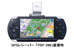 携帯ゲーム機「PSP」専用のGPSレシーバー。エディア「MAPLUSポータブルナビ」や、ゼンリン「みんなの地図2」などの地図ソフトと組み合わせて利用することで、本格的なポータブルGPSとして活用できる。「PSP」を持っていれば、安価でポータブルGPSを導入できる。
