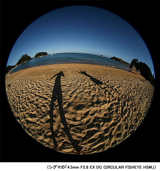 最後にちょっと変わった魚眼レンズを見ていこう。魚眼レンズは魚の目のようなレンズ、ではなく、魚から見た視点のように、水の中から水面上を見上げると映る景色のような写真が撮れるレンズ。ほぼ180度の視野を1枚に収めることができる。