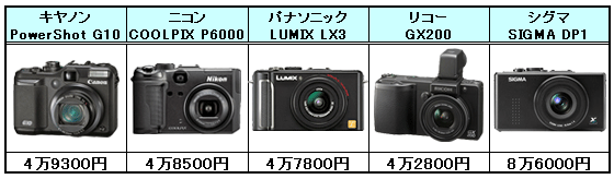 08年発売の主なハイエンドコンパクトデジタルカメラ