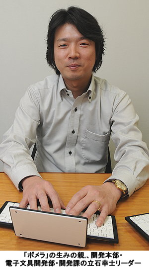 「カバンの片隅に入って、テキストだけ打てて電源の心配をせずに使えるものがないかと、常々モヤモヤしていました」と語るのは、「ポメラ」の生みの親、開発本部・電子文具開発部・開発課の立石幸士リーダー。毎日のように行うミーティングを記録したり、ちょっとしたアイディアを打ち込める手軽なツールがずっとほしかったという。
