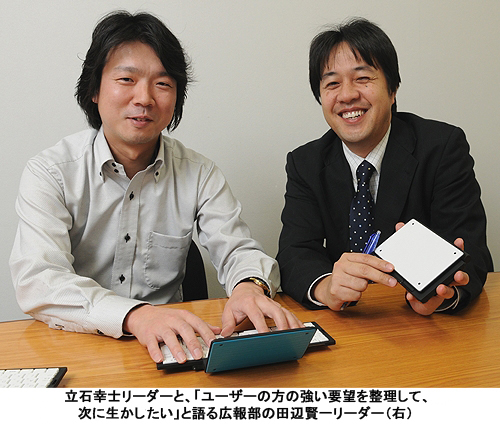 「通信機能がなくメールのやり取りもウェブの閲覧もできないような機械が注目を浴びるとは思ってもいなかった」と語るのは広報部の田辺賢一リーダー。製品を発表した直後から、その反響の大きさにびっくりしたという。特にインターネットのヘビーユーザーからの反響が大きかったのは意外だった。何から何までネット接続が必要というわけではなく、場面に応じてツールを使い分ける、実は高度な使い方をする人たちだと実感したという。