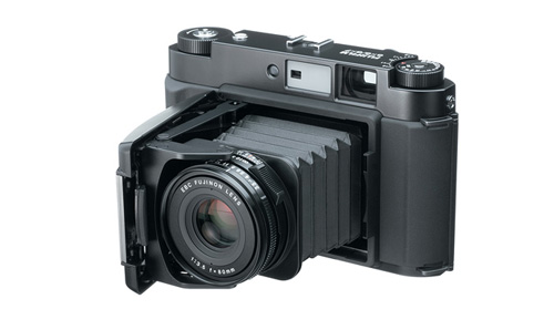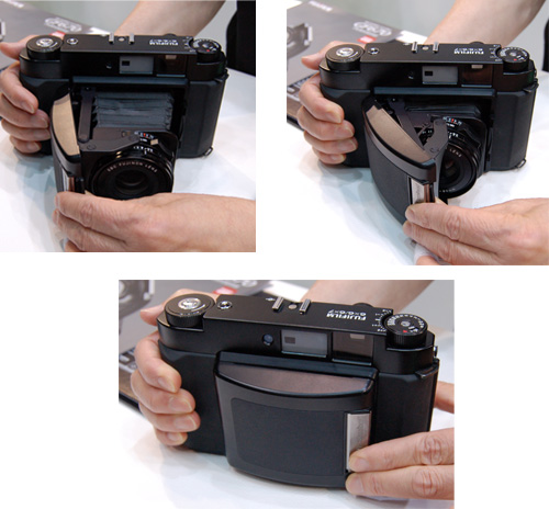 また、中判カメラであっても気軽に使えるよう、レンズ部に携帯性に優れた蛇腹折りたたみ式構造を採用した。また、6×6cm判、6×7cm判の2種類のフィルムサイズが選択できる。実勢価格は22万円前後の見込み。