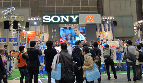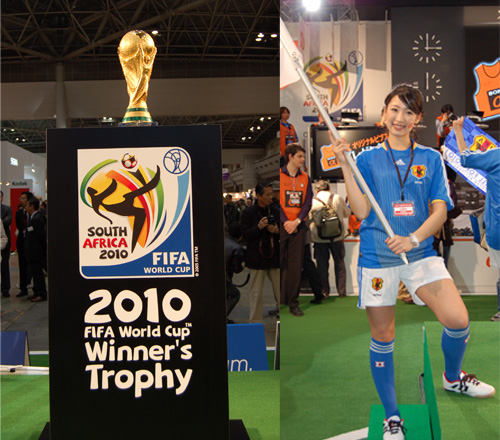 2010年FIFAワールドカップのオフィシャルパートナーであるソニー。床に人工芝を敷きつめ、白いラインコートを施し、ブースをサッカー場のように仕上げていた。また、メインステージでは「2010年FIFAワールドカップ 優勝トロフィー」の特別展示も行った。