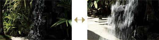 動画撮影では絞り優先やシャッター優先、マニュアルの露出モードが使える。写真はシャッター優先で撮影した場合のイメージで、水の流れが止まったような表現(左)や流れているような表現(右)の動画が撮影できる(写真はパナソニック提供)