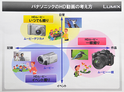パナソニックはデジタルビデオカメラも手がけており、動画対応のデジタル一眼は競合する可能性がある。しかし、「一眼レフは『作品』、デジタルビデオカメラは『記録』ということで住み分けはできる」と、村山チームリーダーは説明する。