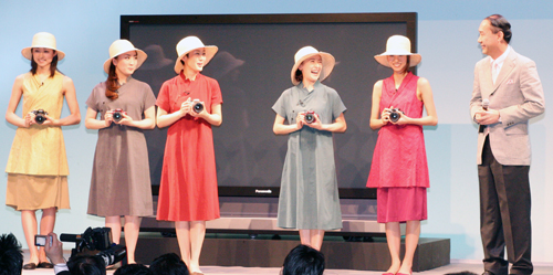 CMキャラクターにはG1に引き続き女優の樋口可南子さん、鳥居かほりさんらを起用。「女流一眼隊」のネーミングで「GH1」の動画機能をはじめ、軽さや使いやすさをアピールする。右は西口史郎・デジタルAVCマーケティグ本部本部長(写真は3月の製品発表会)