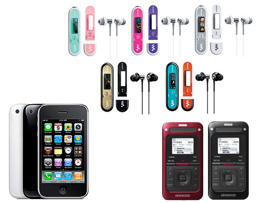 アップルの「iPhone 3GS」、ケンウッドの「MGR-A7」、ソニーの「NW-E040シリーズ」