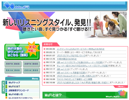 ラジオ情報検索サービス「MuFi」のトップページ