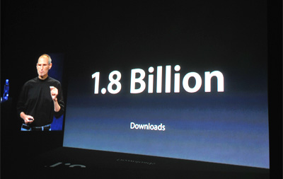 この好調の理由の一つにジョブズ氏は、昨年から開始したアプリケーションのオンラインストア「App Store」の存在をあげた。「現在App Storeには7万5000以上のアプリがあり、ダウンロード数は18億を超えている」と述べた。そして「iPhone OS 3.1」の提供を明らかにするとともに、新しくなった「Genius」も発表した。