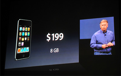 プレスイベントでiPod touchの価格の安さを強調するフィル・シラー上級副社長