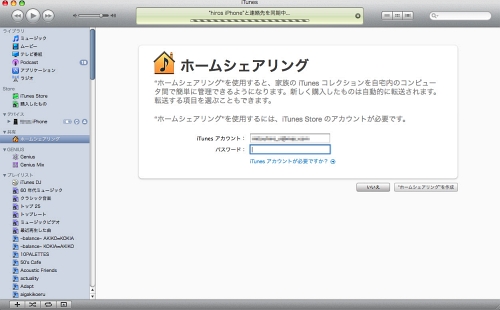 音楽やビデオを共有したいMac・PCのiTunes Storeアカウントで認証すれば、ホームシェアリングが可能になる