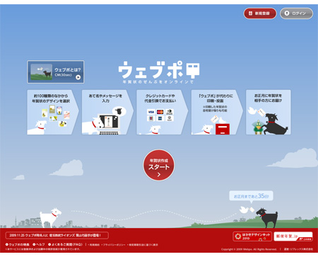「ウェブポ」は、個人情報プラットホームの開発などを手がけるリプレックス社と、日本郵便が連携して行う年賀状のWebサービス。年賀状の作成から印刷、投函までの発注をインターネットで完結できるというものだ。
