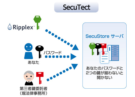 リプレックス社と契約する第三者それぞれの鍵と、個人がもつパスワードで個人情報を守る(出典:リプレックス社)