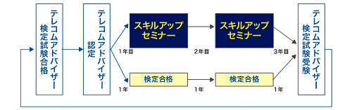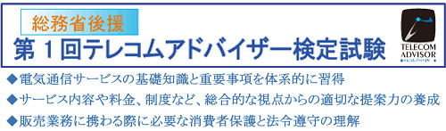 この「テレコムアドバイザー検定」は、主に家電量販店などで携帯電話やインターネット・サービスの販売業務に携わる販売員を対象に、利用者に対して適切な助言ができる人材を育成することを目的に創設された。検定をパスした人は、電気通信サービス全般について必要な知識に精通している人として「テレコムアドバイザー」の資格を認定する。